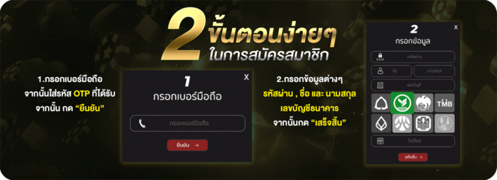 1. เข้าระบบบนหน้าเว็บไซต์ จากนั้นกดสมัครที่ปุ่มสมัคร และระบบจะให้กรอกข้อมูลของคุณ